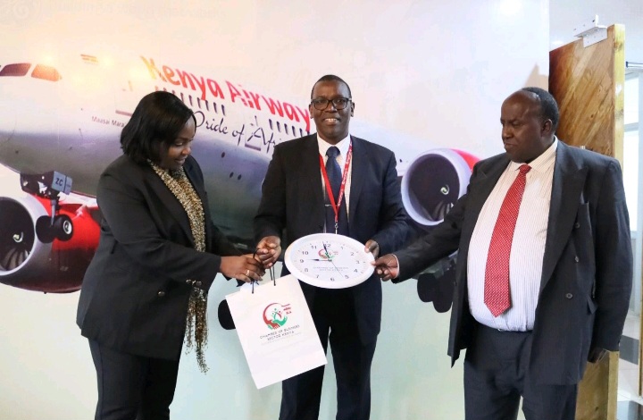 The leadership of the Chamber of Business Sectors in Kenya (CBSK), headed by National Executive Chairman Dr. Samuel Warwathe, held a meeting with Mr. Isaac Mwangi, KQ’s Coordinator of Government and Industry Affairs and Ms.Eunice Chepkemboi The Lead Business Development under Fahari Aviation which is one of the main subsidiaries of KQ PLC.