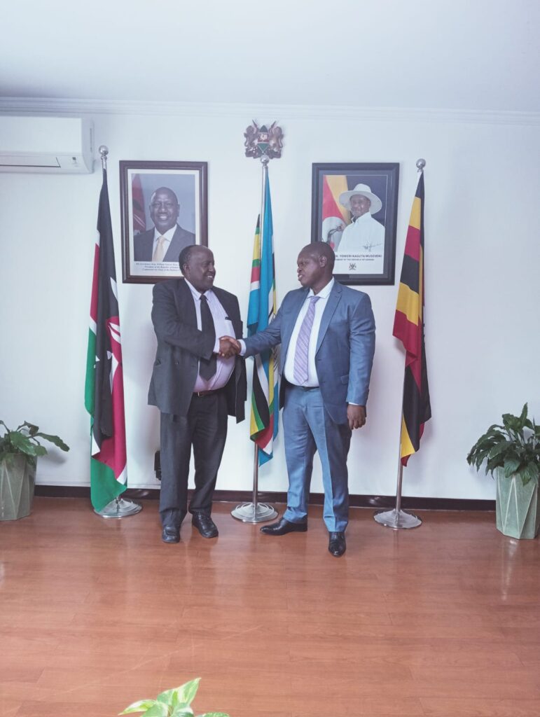 The Chamber of Business National Executive Chairman and Chamber President Dr.Samuel Warwathe accompanied by the Chief Executive Officer Ms.Penah Mutinda and the Counsellor Ministry of Foreign Affairs, Ms. Bernadette M.Ssempa, met Mr.Joash Maangi, High Commissioner and Ms.Doris Komen, Commercial Attaché at Kenya High Commission, Kampala Uganda.